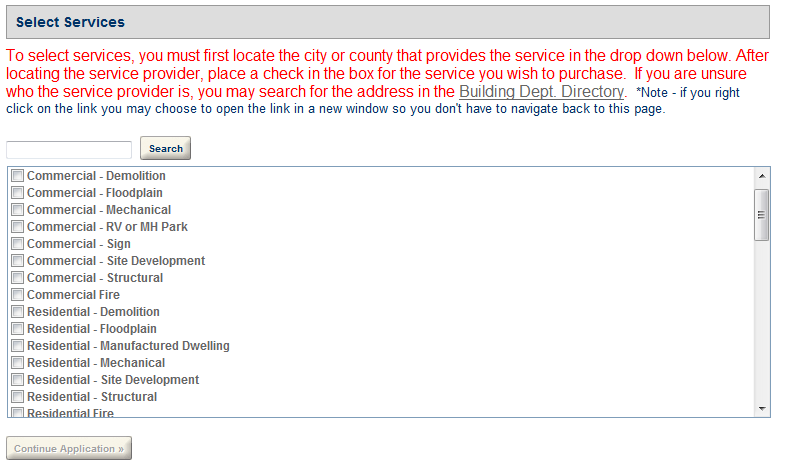 If the Single service selection only check box is cleared in Feature settings, the Select services page displays a list of services for public users to make a single selection or multiple selections.