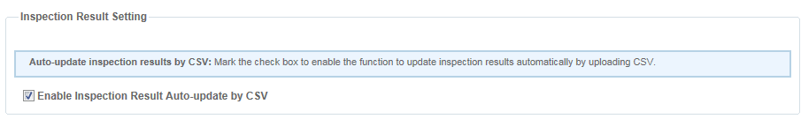 The Inspection result setting section provides the option for you to decide whether it is necessary to review the inspection result CSV file from an external inspector before the inspection results get updated.