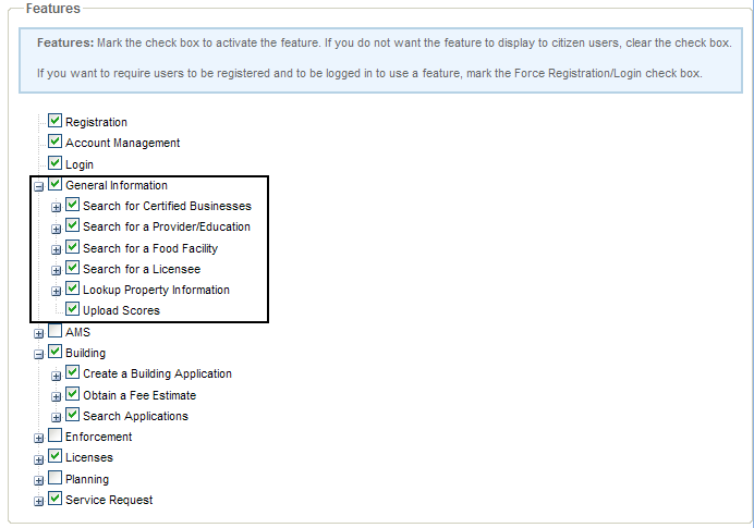 Select the associated check boxes to enable the search functionality.