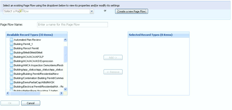 Select the record type you want to add to the page flow from the Available record type window and then select Add to move it to the Selected record types box.
