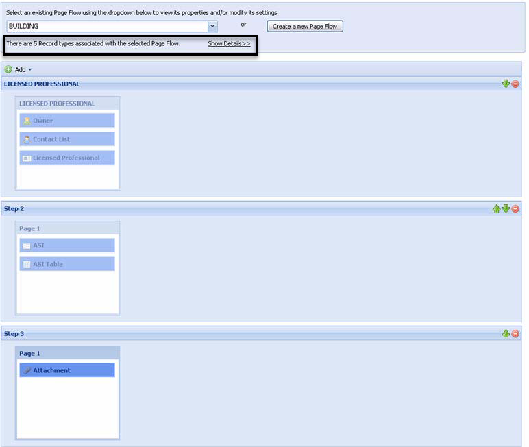 Select the Show details hyperlink to view the list of record types associated with the page flow.