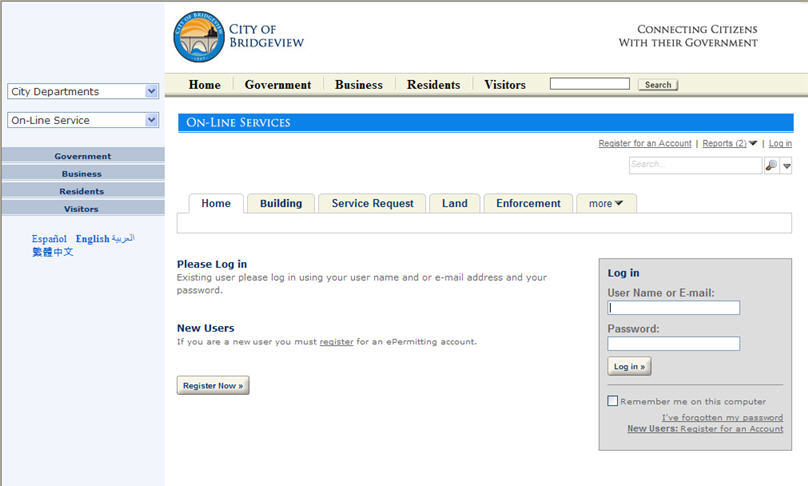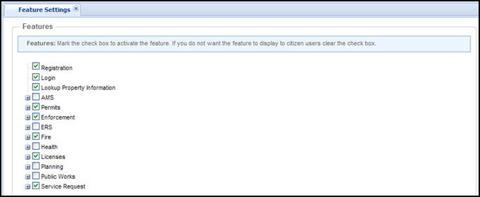 Select or clear the check box for Login. Selecting the Login check box exposes the Login hyperlink located at the top right corner of the Welcome global web page. If you clear this check box, public users only can search for records but cannot log in to Citizen Access.