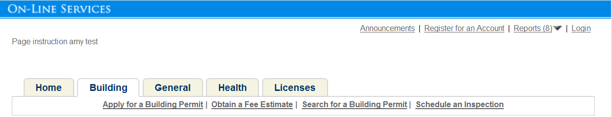 You can add a system-default or customized URL as a link to the appropriate page layouts in a Citizen Access page or outside Citizen Access. For example, add the URL to your agency’s home page. If you do not assign the specified record type to anonymous role group for record creation, when users click the link from outside Citizen Access directs them to the Citizen Access login page. Users must log in to Citizen Access to access the record creation page.