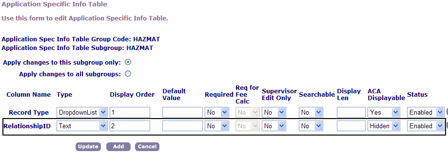 For more information on ASI tables, see “Working with ASI Tables” section in the “Working with Application Specific Information” chapter in the Accela Civic Platform Administrator Guide. -