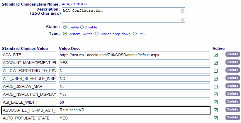 For complete information on how to set up Standard Choices, refer to the Accela Civic Platform Configuration Reference.