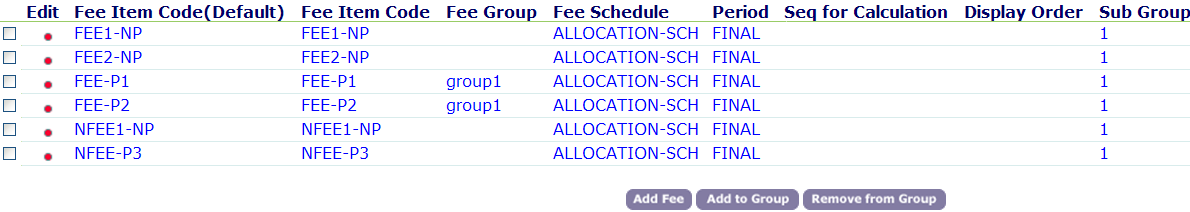 To add the fee items to the existing groups, select the groups you want in the Add to existing group list.