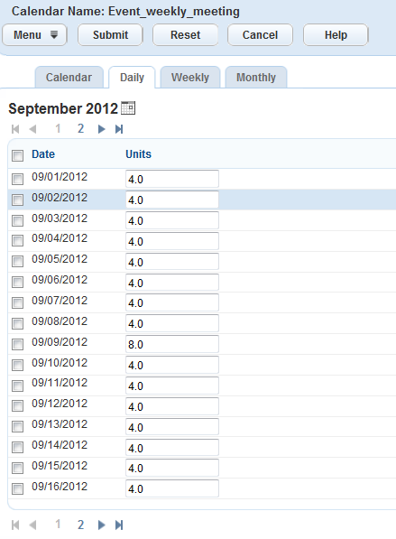 When you create a calendar, you set the default number of time blocks (units) you can schedule per day in the #Units allocated per time range field (see Create and edit calendars). This field gets its default value from the daily unit setting you assign in the calendar.