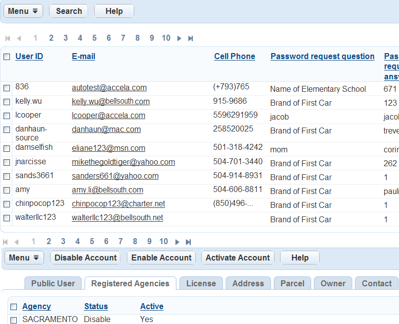 If you have enabled the multiple agency administration feature (see Set up cross-agency operations), after a public user attempts to log into Citizen Access hosted by a different agency from the one that created the account, you can enable and activate the public user account in the new agency.