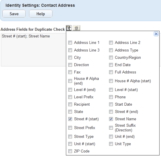 Note: All contact address identifier fields are joined by the AND condition and work as one identifier in duplicate contact address checks. -