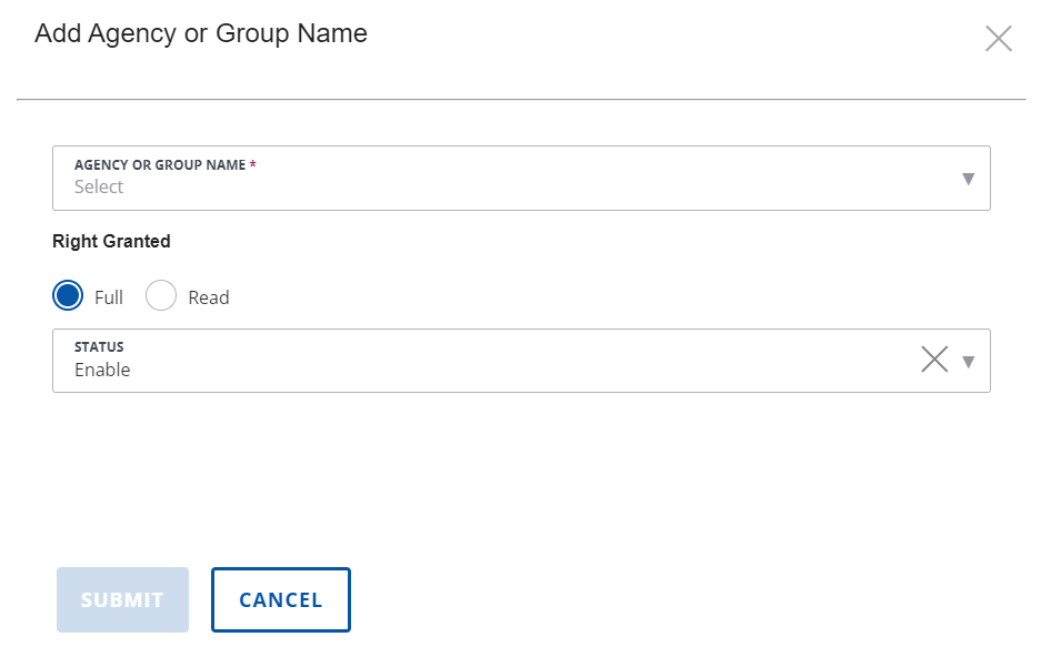 Condition type security allows you to set agencies or groups access levels to either Full or Read access.