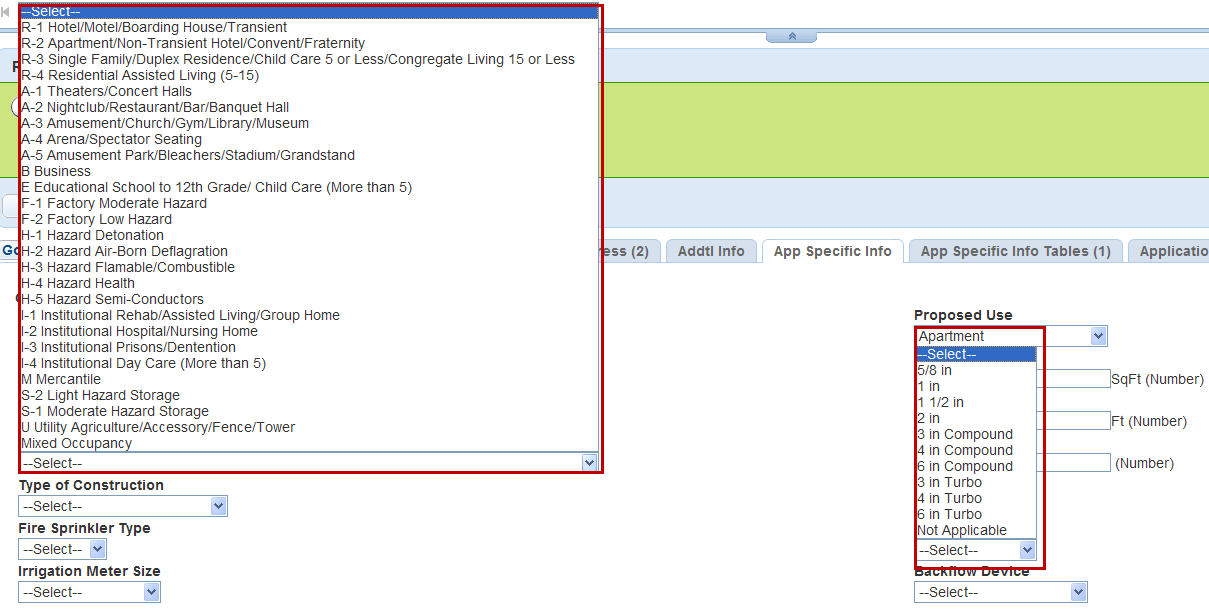 Custom Fields drill-downs guide users through a series of drop-down lists that present unique data choices based on previously-selected data field selections. When the user completes all of the selections, Civic Platform displays the field or a drill-down table with the value results.