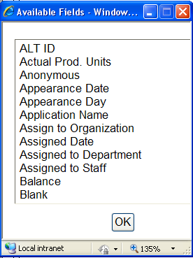 To display fields, from the list of Available fields, double-click each field you want to add to the form, and then select OK.