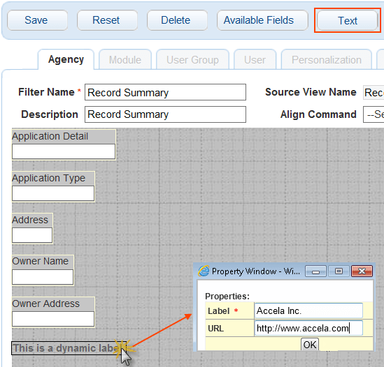 Rename any of the field labels, according to your agency's business objectives, as follows: