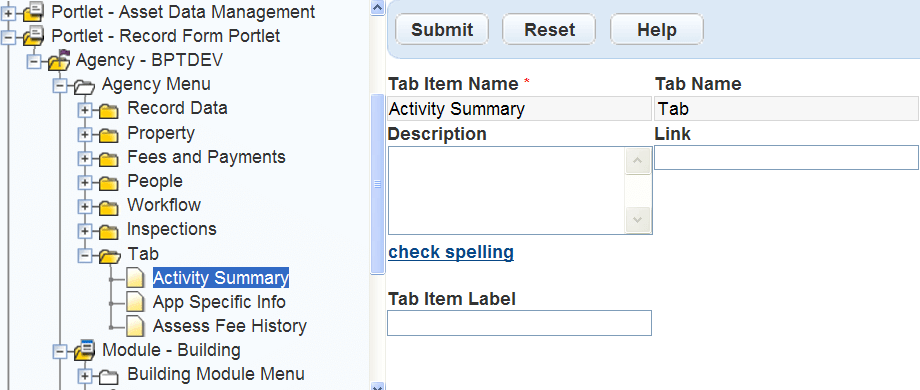You can specify labels for any tab items in a tab menu. The labels are what users see for the corresponding tab items in the detail tabs. Without labels, the tab item names represent tab items in the tabs.
