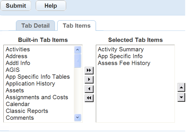 If you want to remove a tab item from the Selected list, select the item and select the left single arrow