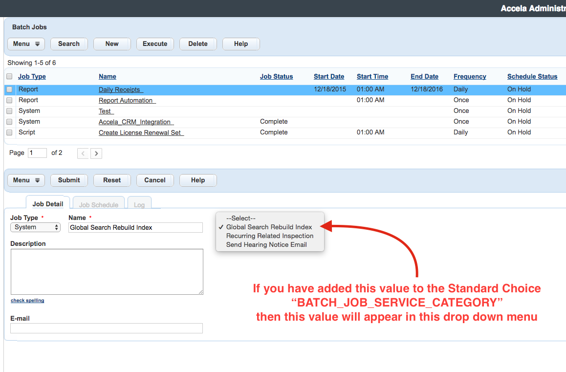The global search function works against indexed content in the Civic Platform database. To ensure the most accurate and up-to-date search results, configure a batch job to regularly index the Civic Platform database.