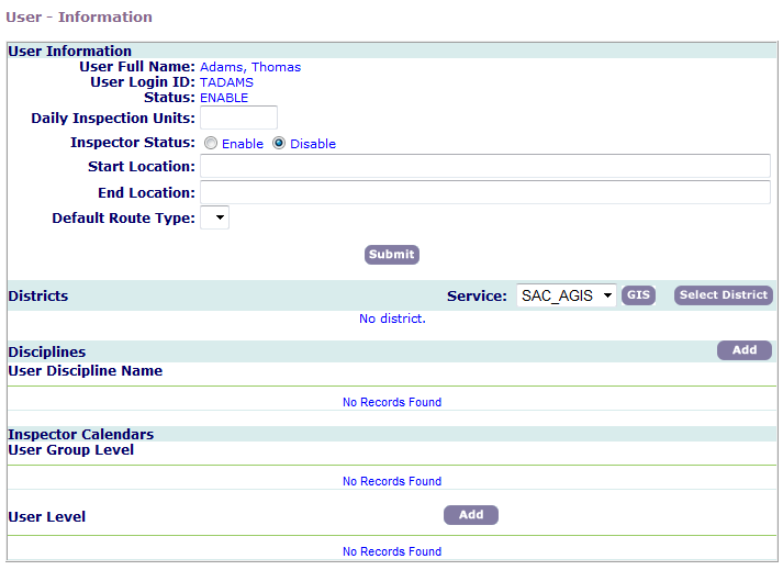You can assign one or more calendars to an inspector. If you identify a calendar for a user group, the inspector automatically inherits the calendar and its availability and blackout days. You can associate additional calendars with the inspector at the user level. Civic Platform uses the user group and user level calendars to confirm the availability of an inspector when automatically scheduling inspections.