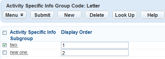Subgroups are the activity-specific information data elements that an agency defines and associates with an activity. Administrators define subgroups as needed. An agency can use subgroups with multiple group codes. You can copy subgroups from one group code to another as needed.