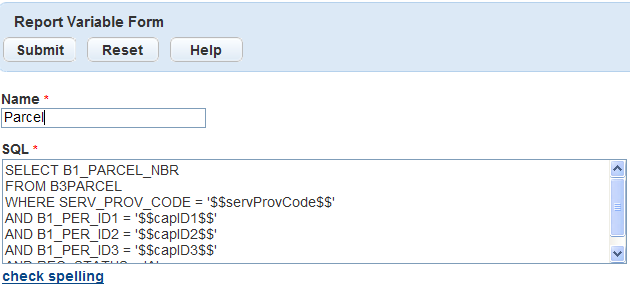 Variables are raw database scripts Civic Platform executes directly against the Civic Platform Oracle or MS SQL Server database outside of a report writer or development tool. You can use these scripts to pass parameters to a URL report, like variables in an RTF report. Before you can run a report, you must set up the variables and a URL report service in Report Manager. For information on how to set up a variable, see Use variables in reports.