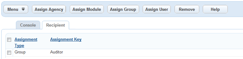 Both tabs use the Assign buttons to decide which agency, module, user group, and user has access to the current feature.