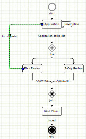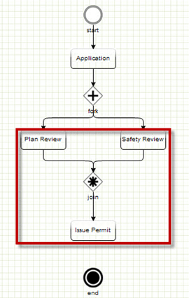 | Join | Node | Indicates all the previous tasks must be complete before the next task starts or the workflow ends. If opening a workflow configured in the Classic Workflow tool, the join widget indicates several parallel tasks. |