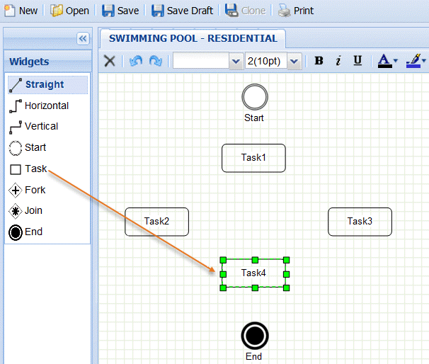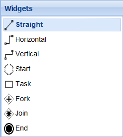 To connect two tasks, add a flow widget (for example, Straight, Horizontal, or Vertical):