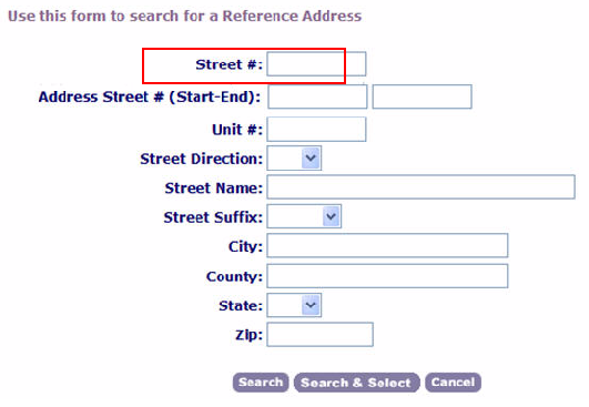 Agencies can provide an exact numeric street number for search criteria and can return exact address matches in Civic Platform by enabling the field Street # in the Find Application Profile. To display this field, you must configure the R1 Server Constant SPECIAL ADDRESS MODEL. Set the constant value to Yes to display the Street # field in the Application Search Form Profile page.