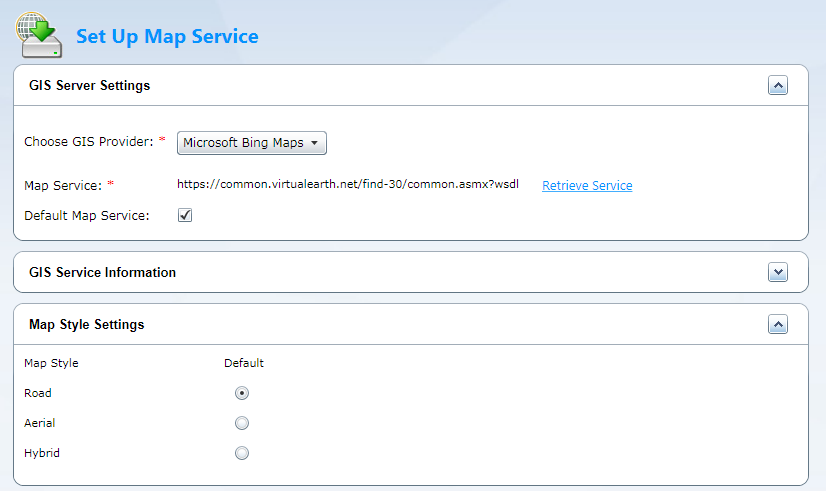 Before you can configure GIS server settings, you must define a map integration environment. For instructions, see Integrating Your Environment.