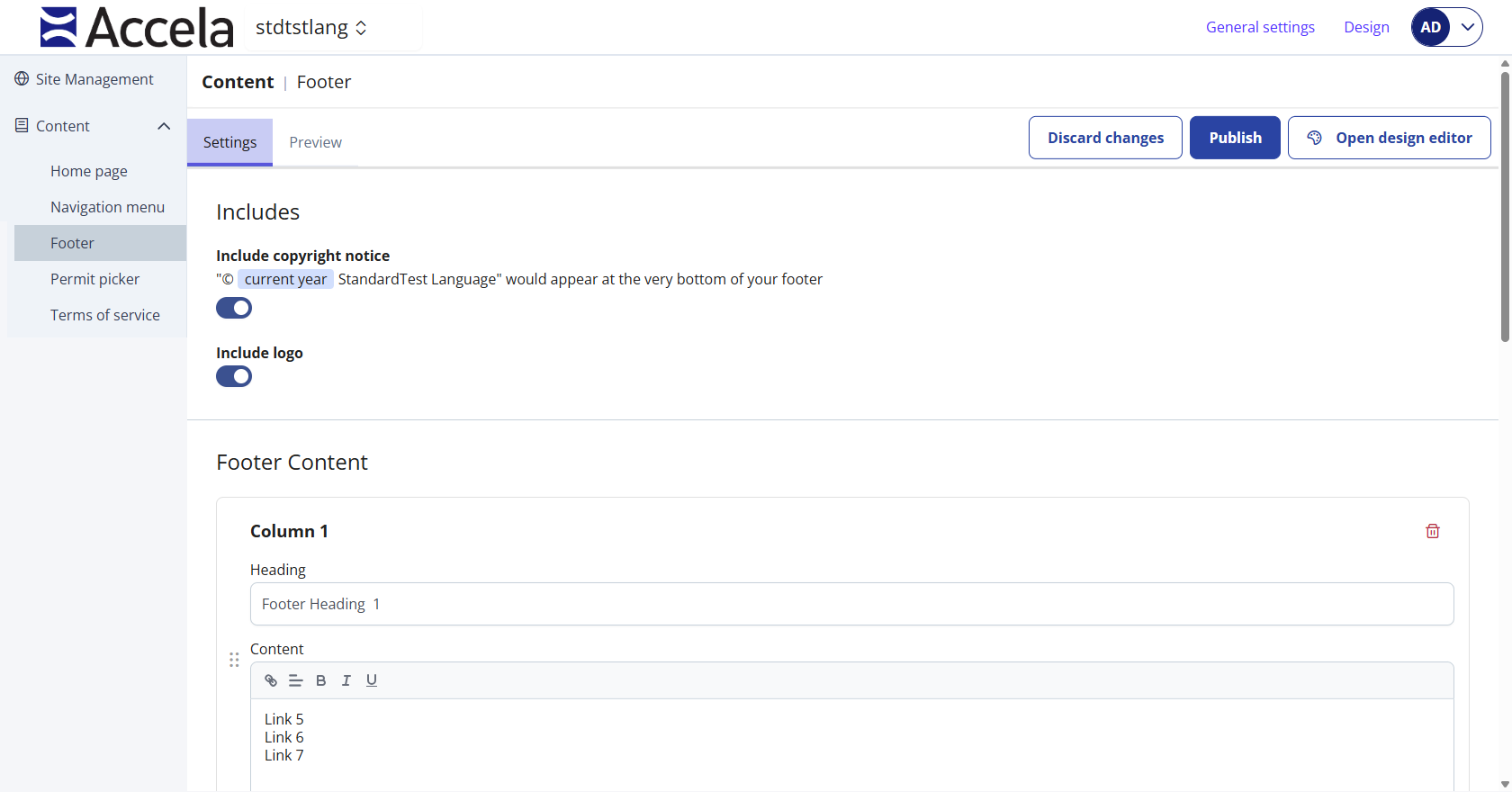 You can choose to include or exclude copyright notice text, a logo, or an image in the footer of the public user home page.