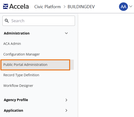 Welcome to the new Public Portal! Public Portal will revolutionize how you interact with residents and businesses by providing your users a new, modern, user-centric home page with consistent workflows, branding, and an intuitive user experience. We created Public Portal to focus on the users, which differs from the previous agency-centric Accela Citizen Access (ACA).