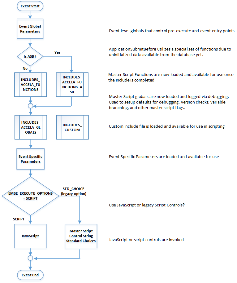 The EMSE execution path shows that the master script execution process leverages four script include files.