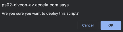 Select OK to pull the script from the repository into Civic Platform.