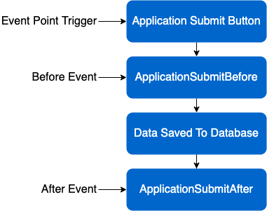 Example: When you fill out the form to create a new record and then select the Submit button, you trigger an event point which usually has two (but occasionally only one) events associated with the event point.