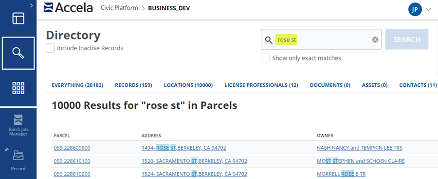By default, inactive records are not included in global searches. To include them, select the Include inactive records check box.