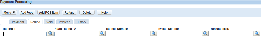 Use the Refund tab on the Payment Processing page to refund multiple fee payments for one or more applications simultaneously.